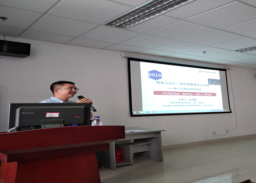 为增进学院19级特教专业新生对特殊教育的专业认识,拓宽教师的教学科研视野,学院邀请南京特殊教育师范学院张伟锋博士于9月24日,在特教楼302会议室,为新葡萄官网师生做了《镜鉴与启示:两岸特殊教育之比较——基于台湾访学的经历》的报告,并与新葡萄官网师生进行了交流。新葡萄官网19级特教专业新生及部分教师参加了此次报告,讲座由特教系主任宿淑华老师主持。