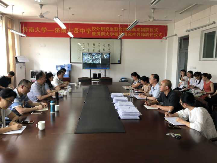 2019年6月27日下午,新葡萄88833官网AMG新葡萄88833官网AMG王本法副院长一行前往济南七贤中学,同七贤中学的领导和老师们一起召开了关于“合作学习”的研讨会。参加会议的有王本法副院长、张素玲教授、张继明副教授、刘福才副教授、魏淑华副教授、乔福强博士以及2018级教育管理专业和心理健康教育专业的全体教育硕士研究生,济南七贤中学参加会议的有校长马千里、副校长李航珍和四位一线老师。