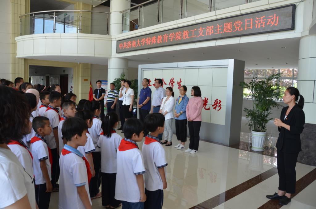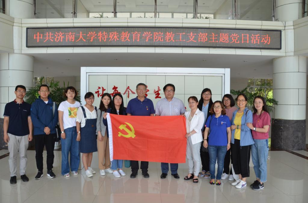 2019年6月6日,新葡萄88833官网AMG教育与心理科学院教育系教工党支部前往济宁市特殊教育学校,举行了以“弘扬高尚师德,潜心立德树人”为主题的主题党日活动。新葡萄88833官网AMG教育与心理科学院党委书记王希普,党委副书记、副院长季竹君及教育系教工党支部全体党员参加了此次活动。