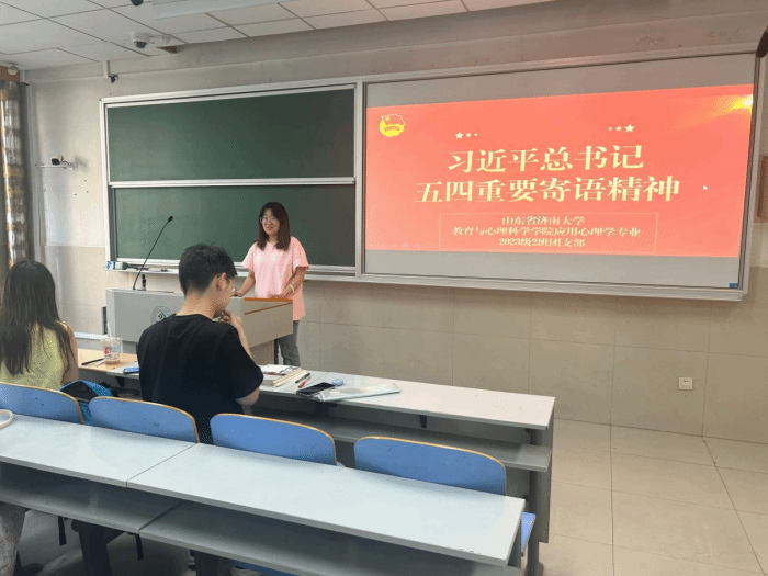 此次活动分为学院团委和班级团委两个部分。在学院团委活动中,学院开展了“传承五四精神,勇当时代先锋”主题讲座活动。主讲人刘晓彤老师带领同学们重温了五四运动的背景,了解其精神内涵,并根据习近平总书记五四重要寄语讲话精神,深入探讨了新时代五四精神内容,引导同学们以史为鉴,谨记五四精神现代意义的同时更要将五四精神进行传承,放飞青春梦想,书写人生华章。随后学生们就习近平总书记五四重要寄语讲话展开热烈讨论,进一步明确了作为新时代青年的责任与使命。