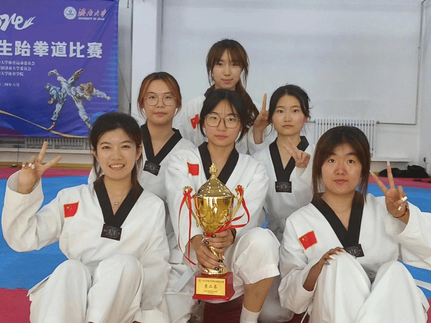 比赛分为三个环节,首先是紧张刺激的快腿比赛,这是一场速度与力量的较量,只听裁判一声令下,选手们迅速出击,腿部如疾风般挥动,空气仿佛都被他们的气势所搅动。随后,品势比赛将比赛氛围推向了高潮,选手们在赛场上气定神闲,动作流畅自然,将跆拳道的精髓展现得淋漓尽致。最后,是跆拳道舞蹈的比拼,他们的动作整齐划一,身姿矫健,每一次踢腿、每一个转身都充满了力量与美感,赢得了现场观众的阵阵掌声和喝彩。经过激烈角逐,最终新葡萄官网代表队凭借出色的表现夺得第二名的好成绩。