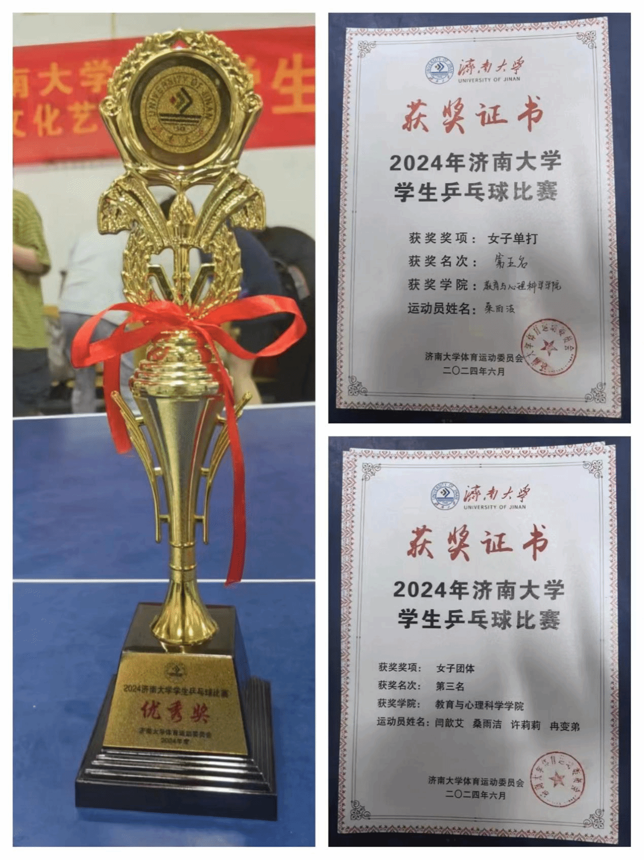 赛前,队员们刻苦努力、辛勤训练,力求每一板都不留遗憾。在团体赛场上,队员们尽情挥洒汗水、互相鼓励、互相理解,真正做到了尊重对手、尊重裁判。在单打赛场上,队员们稳扎稳打,急缓相间的动作尽显大将风范,比赛现场热闹非凡,观众的喝彩与掌声此起彼伏。最终,新葡萄官网代表队取得了女子团体第三名、女子单打第五名的佳绩。