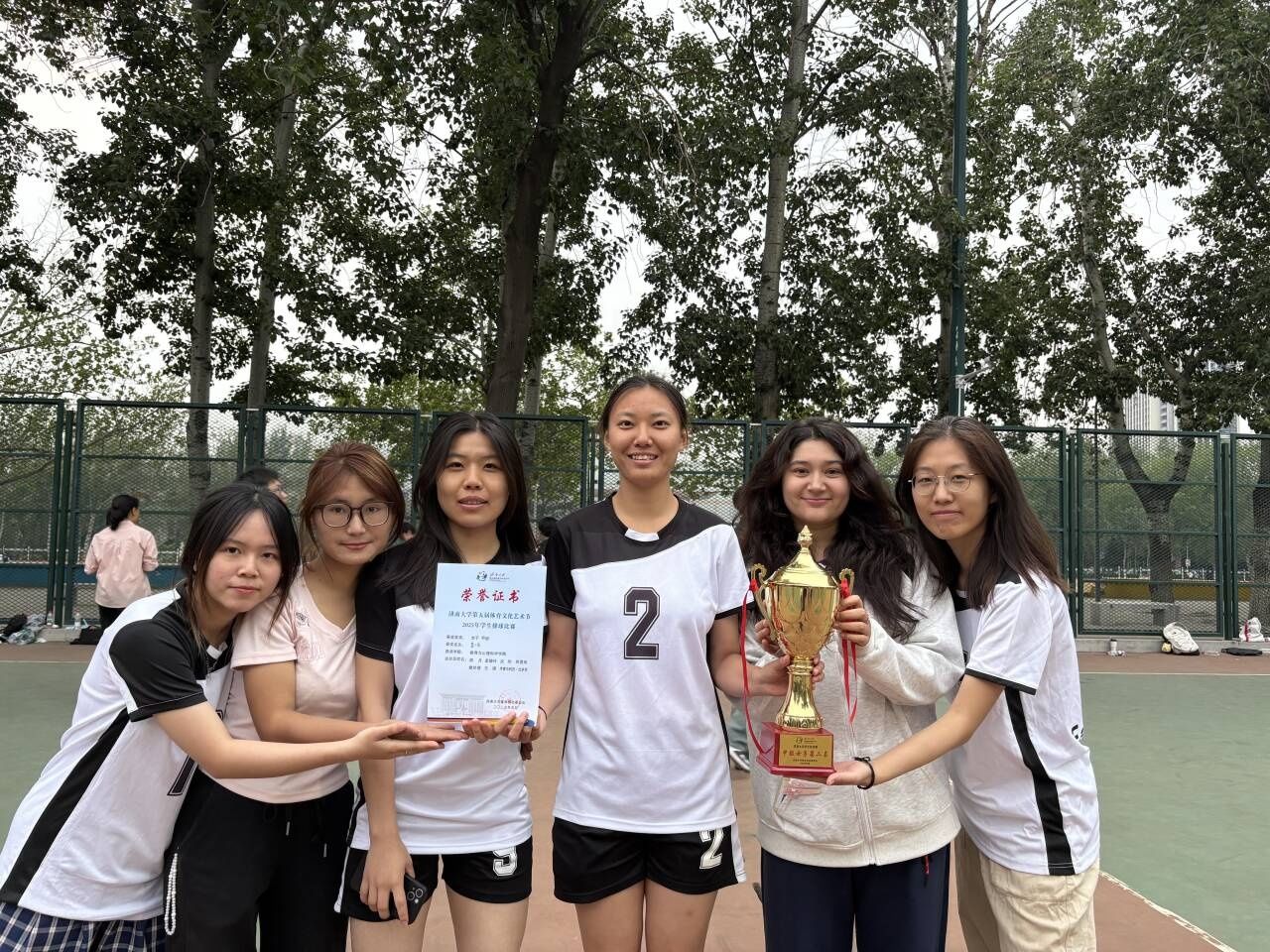 赛场上,队员们配合十分默契,每一次传球、扣杀、救球动作连贯流畅,展现出高超的竞技水平,队员们沟通高效,通过眼神和手势就能迅速领会彼此意图,精准执行战术安排。半决赛中,队伍凭借出色的团队配合能力,快攻迅速果断,防守坚不可破,顺利晋级决赛。最终新葡萄官网代表队取得了女子组第二名的佳绩。