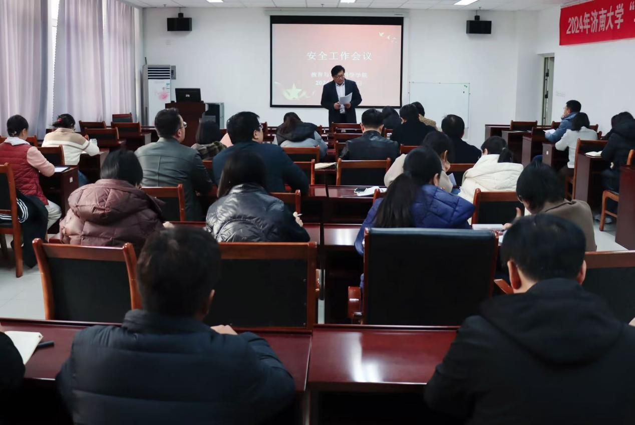 为深入学习贯彻习近平总书记有关重要指示批示精神,认真落实全省教育系统安全稳定工作部署会议精神,传达学校会议精神,12月3日下午,新葡萄88833官网AMG召开了安全工作会议,学院党委书记季竹君主持会议并讲话,学院全体教职工参加会议。