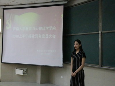 本次会议由新葡萄官网本科生党支部书记王亚男主持。会议伊始,本科生党支部书记向大家简单介绍了此次大会的意义和流程。接着新葡萄官网13名预备党员依次上台,讲述了自己在完成党课学习后对党的理解和学习的收获。随后,纪祥老师对本次成为预备党员的13名同学表示了赞扬,从多个方面对发展党员进行了教育,并指出发展党员要以为人民服务为原则,树立根本的价值方向,在工作和学习中起到带头模范作用,成为一个有价值的、伟大的人。会议最后,在党支部书记的带领下,本科生党支部全体成员高举右拳,面向党旗,慷慨地宣读了入党誓词,激昂的气势震撼全场。