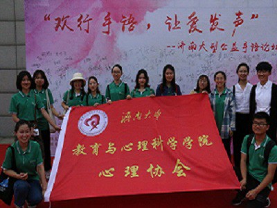 为了使更多的人了解并学习手语,搭建起同聋哑人沟通的桥梁,提高志愿者的服务技能,5月13日,新葡萄88833官网AMG心动泉城心理服务中心、心泉青年志愿者协会和院心理协会的志愿者们参加了山东师范大学主办的“手语传情,让爱发声”济南大型公益手语论坛。