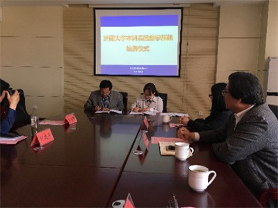 挂牌仪式由泰安市特殊教育中心副校长褚文静主持,首先对我校一行人的的到来表示了热烈的欢迎,并对接下来的合作满怀期许。随后,泰安市特殊教育中心校长高理敬介绍了学校“美丽特教”的治学思想,并表示本次本科实践教学基地的落成,是两校长久以来良好合作的硕果。新葡萄官网党委副书记、副院长季竹君深受高校长满怀特教情怀讲话的触动,他表示在与泰安市特殊教育中心的继续合作中感受到了更多的责任与使命感,对特教中心长久以来的支持表示感谢。希望借助新葡萄88833官网AMG已有的资源与平台,发挥学科优势与特色,集两校之力更好地为特殊儿童发展服务、为本科人才培养提供基础。之后,双方领导共同签署本科实践教学基地合作协议,并为基地落成揭牌,由此标志着泰安市特殊教育中心正式成为我校本科实践教学基地。