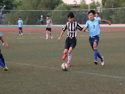 比赛前,两队都早早来到操场进行赛前适应性训练。足球比赛在高温中展开,比赛刚开始新葡萄官网球员便以威胁的头球,将比赛拉入紧张的气氛,球员们都积极展开防守压制对方的进攻。新葡萄官网球员凭借雄厚的实力和默契的配合一脚射入了球门。新葡萄官网球员精诚合作、互相鼓舞,最终以1:0的比分获得了小组赛的胜利。