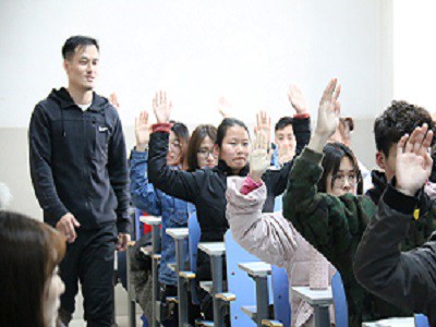 讲座开始,王辉老师首先向学生们讲述现今社会中青少年令人担忧的身体素质状况,并举出几个社会实例,加深学生对此现象的认识。随后王辉老师对台下学生进行提问互动,使学生从自身角度思考自己的身体状况,从而引出运动的重要性。同时,王辉老师提出了适量运动这一概念,结合实例强调运动要量力而行。除运动外,王辉老师指出,要保持身体健康还要摒弃不良习惯并且着重点出了抽烟喝酒的严重危害。将不良习惯以漫画的形式展现出来,激发学生兴趣的同时也令学生有所反思。最后,王辉老师向学生们示范了多种舒缓疲劳,放松肌肉的健身动作,并悉心指导学生学习。王辉老师语言通俗易懂,风趣幽默,极大地拉近了与学生们的心理距离,不时获得台下热烈的掌声。
