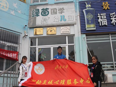 为了协助幼儿园老师工作,保障孩子们的安全,呵护孩子们的天真无邪。11月9日新葡萄88833官网AMG心动泉城心理服务中心、心泉青年志愿者协会和院心理协会的志愿者们来到绿茵国学幼儿园进行志愿服务活动。