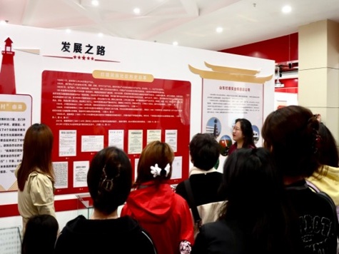 灯塔民族社区作为全国民族团结进步模范村,自新中国成立以来,始终以促进各民族和谐共处、共同发展为目标,先后两次被国务院授予“全国民族团结进步模范集体”称号,并于2024年助力周村区获评“全国民族团结进步示范区”。活动伊始,学生们在社区工作人员的引导下参观了全国民族团结进步教育基地展厅。展厅通过详实的图文资料、实物展陈及多媒体互动,系统呈现了社区从多元文化交融到互嵌式发展的历程。从早期回汉民族共同定居的历史基础,到近年来通过“红石榴”驿站、网格化管理等创新举措打造的民族团结新格局,学生们深刻体会到“中华民族一家亲”的凝聚力。