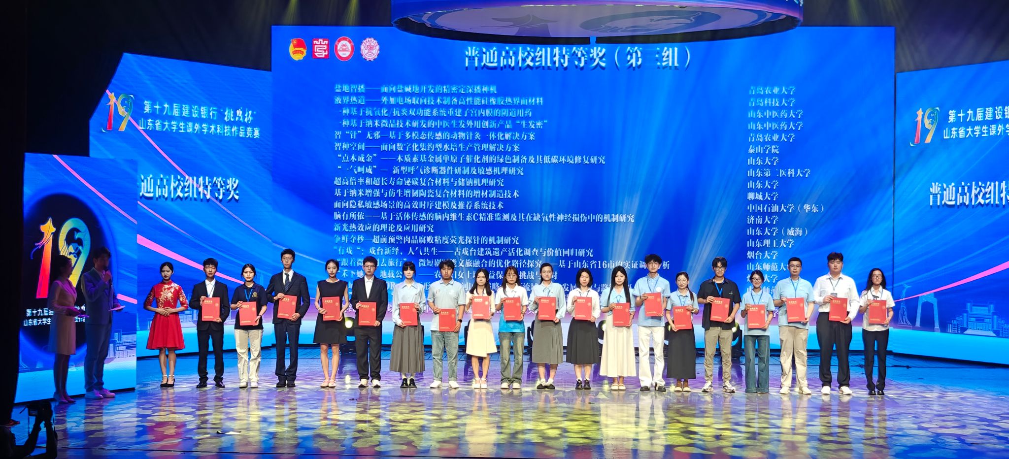 6月4日至6日,由共青团山东省委、山东省科学技术协会、山东省教育厅、山东省科技厅、山东社会科学院、山东省学生联合会主办的第十九届“挑战杯”山东省大学生课外学术科技作品竞赛终审决赛(普通高校组)在临沂大学落幕。经过现场质询、问辩评审等环节的激烈角逐,新葡萄88833官网AMG参赛团队再创佳绩,荣获特等奖一项、三等奖一项。
