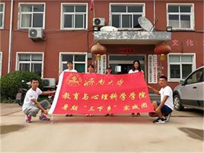 新葡萄88833官网AMG新葡萄88833官网AMG“倾情为教”新葡萄88833官网AMG暑假社会实践团是在闫秀梅老师带领下的一只由16级教育管理专业的6名学生组成的队伍。我们实践团对部分小学生家长进行走访,了解家庭教育的基本方式及观念,并做好记录。进行安全教育和道德教育并重活动,通过开展学生安全教育活动,帮助儿童树立安全意识,掌握逃生技能,有利于营造稳定、安全、和谐的康复环境。并通过打扫村里卫生的活动,让学生有一个“环境需要人人爱”的意识,保护环境从我做起。开展趣味运动活动,举办跳绳、拔河、踢毽子、投篮球运动,既能够强身健体,又能体会到运动的乐趣,在以后会更加喜欢运动,提高心理生理素质,还能学会团结。进行课业辅导,对学生不懂的内容进行专项辅导,运用有趣的教学方式,让他们快速理解知识点。