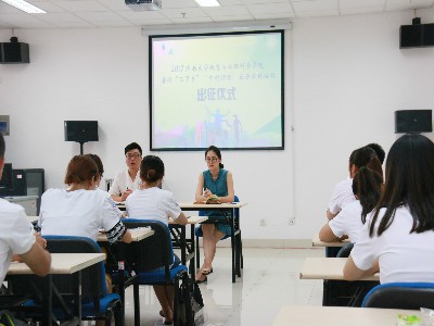 7月13日下午,新葡萄88833官网AMG于特教大楼会议室举行了2017年新葡萄88833官网AMG暑期“三下乡”、“千村行动”社会实践活动出征仪式。参与出征仪式的有党委副书记季竹君,团委书记纪祥,辅导员魏文静以及四支志愿服务队的四十余名志愿者。