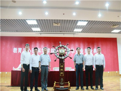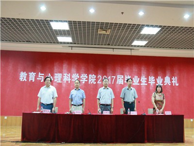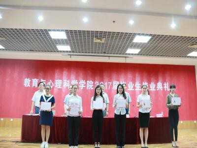 毕业典礼在庄严肃穆的国歌中拉开了帷幕。学院副院长王本法宣读2017届优秀毕业生表彰决定,并为学院优秀学生代表颁发了优秀证书。2017届全体教心学子经过几年的艰辛努力、刻苦学习,用智慧和汗水谱写了大学生活光辉绚丽的篇章,圆满完成了学业,即将开启新的人生征程。在踏上新的征途之前,毕业生们表达了对学院深深的爱意:“领航舵”寄予学院,希望新葡萄88833官网AMG蒸蒸日上,一帆风顺,成就雄基伟业。学院也向2017届毕业生赠送纪念礼物,希望他们永远记得教心这个港湾,无论风雨一定要常回家看看。
