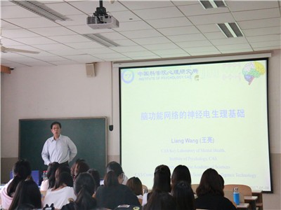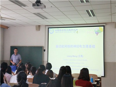 5月8日,中国科学院心理研究所博士生导师王亮教授在10教504教室内为新葡萄88833官网AMG的同学和老师们做了题为“脑认知功能网络的神经电生理基础”的专题讲座,新葡萄88833官网AMG院长杨昭宁,副院长陈功香及心理系和特教系部分老师代表出席讲座,14级应用心理学专业部分学生听取讲座。