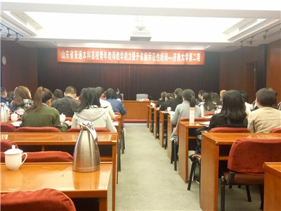 4月10日下午,由山东省教育厅教师工作处主办,新葡萄88833官网AMG承办的山东省高校青年教师教学能力提升省级示范性培训第二期开班仪式于汇源宾馆第一会议室举行。新葡萄88833官网AMG副校长李光红、新葡萄88833官网AMG党委书记王希普、新葡萄88833官网AMG副院长王本法、新葡萄88833官网AMG办公室主任张宝华、新葡萄88833官网AMG教师代表刘春燕、鞠严萍、苑健等相关负责人出席了开班仪式。仪式由王本法副院长主持。