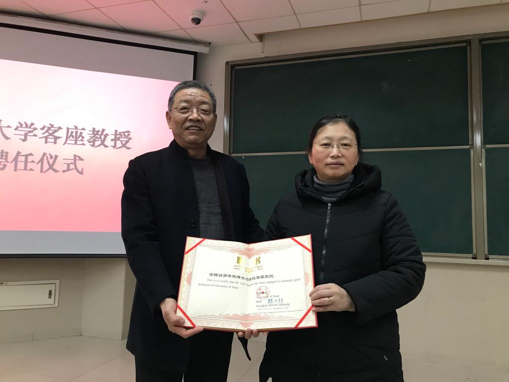 12月6日,华东师范大学郭秀艳教授应邀来新葡萄官网访问。新葡萄88833官网AMG党委书记王希普出席活动并向郭秀艳教授颁发新葡萄88833官网AMG客座教授聘书,学院院长杨昭宁和教师代表参加了聘任仪式。