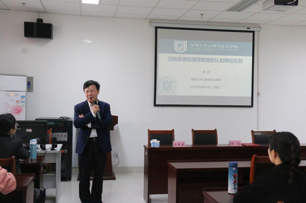 李红教授为我校师生作了“归纳推理和演绎推理的认知神经机制”的学术报告,报告会由陈功香副院长主持。李教授详细介绍了其团队在演绎推理和归纳思维两个研究领域中进行的一系列富有原创性的探索,以及取得的具有全球性影响的研究成果,并畅谈了作为青年人应该如何规划自己的职业生涯,为在场的青年师生提供了宝贵的成长建议。