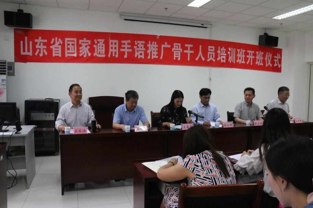 5月24日,山东省国家通用手语推广骨干人员培训班开班仪式在新葡萄官网举行。山东省残疾人联合会副理事长张文涛,新葡萄88833官网AMG副校长陈月辉,山东省残疾人联合会教就部二级调研员刘光顺,学院党委书记王希普,学院副院长王本法及山东省国家通用手语推广骨干人员培训班学员56人参加了开班仪式。仪式由山东省教育厅基教处副处长王春英主持。