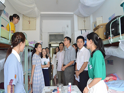 伴随着九月开学季的到来,新葡萄88833官网AMG喜迎2019级新生,为更加深入的了解新葡萄官网大一新生各方面的情况,9月1日,新葡萄88833官网AMG党委书记牛瑞斌、院长杨昭宁、办公室主任卓华丽、团委书记范雅文、16级辅导员魏文静和19级辅导员刘如喜走访新生宿舍进行沟通交流与安全检查。
