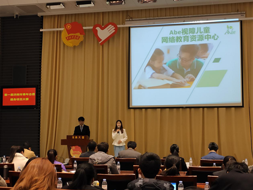 本次大赛以“青春志愿行,奉献新时代”为主题,聚焦阳光助残、关爱农民工子女、邻里守望与为老服务、脱贫攻坚等13个社会热点。活动主要设置志愿服务项目大赛、志愿服务创意大赛两个子项目。新葡萄88833官网AMG “Abe视障儿童网络教育资源中心”团队参加了其中的项目大赛,并经过前期初审,入围市赛终评。经现场路演答辩、评审合议等环节最终荣获志愿服务项目大赛银奖。