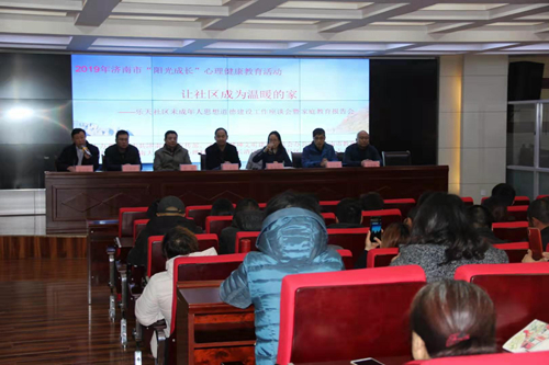 12月7日上午,由中共济南市委宣传部、济南市精神文明建设委员会办公室与济南市教育局联合主办,由新葡萄88833官网AMG新葡萄88833官网AMG和乐天社区、乐天小学联合承办的2019年济南市“阳光成长”之“让社区成为温暖的家——乐天社区未成年人思想道德建设工作座谈会暨家庭教育报告会”在长清区乐天小学举行。活动开幕式由长清区乐天小学校长张庆跃主持。新葡萄88833官网AMG新葡萄88833官网AMG王本法教授、郭峰教授、办公室张宝华主任、心理健康教育领域的硕士研究生张瑶、高天歌以及乐天小学的教师和家长共计120余人参加了此次活动。
