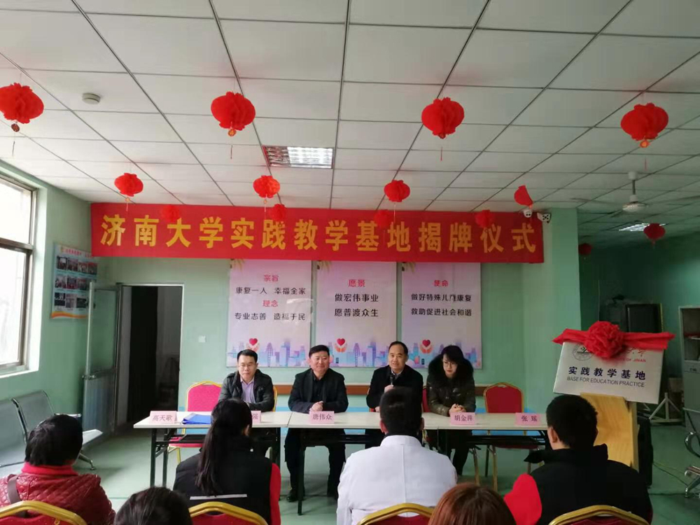1月13日上午,新葡萄88833官网AMG新葡萄88833官网AMG王本法教授、心理系主任乔福强博士、特殊教育系教师代表胡金萍老师和硕士研究生张瑶、高天歌一行,来到济南市市中区伟众儿童康复中心(以下简称“康复中心”),开展“新葡萄88833官网AMG实践基地挂牌仪式”活动。康复中心负责人唐伟众院长和各位领导、教师20余人参加此次活动。此次活动由伟众儿童康复中心教师主持。