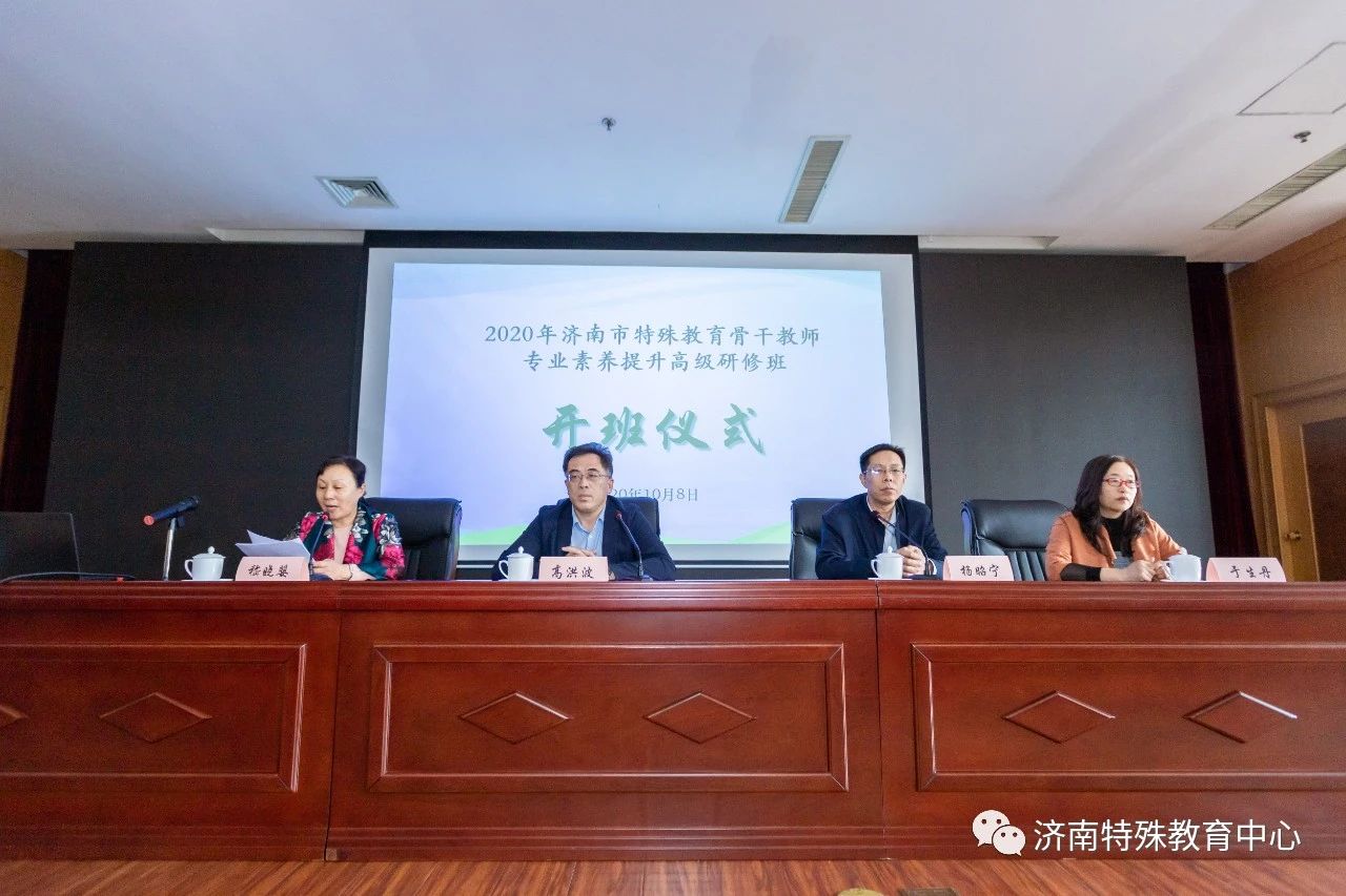 为促进济南市特殊教育教师专业发展,建设一支高素质的特殊教育师资队伍,10月8日至10月11日,由济南市教育局、新葡萄88833官网AMG特殊教育学院与济南市特殊教育资源中心共同举办的“济南市特殊教育骨干教师专业素养提升高级研修班”成功举行。济南市教育局基础教育处处长高洪波、济南特殊教育中心校长嵇晓婴、副校长于生丹,新葡萄官网院长杨昭宁,学院办公室、特教系负责人,以及济南市各区县特教分管干部、各特教学校骨干教师、各普通学校承担随班就读及送教上门工作的骨干教师共100余人参加了开班仪式。