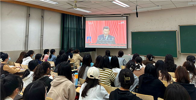 学院领导班子成员、党委委员、党支部书记和全体辅导员集体在特教大楼A315室观看了开幕会直播,与此同时,学生党员、团干部和团员代表分别在特教大楼A302室、A317室和第十教学楼106教室集中观看了开幕式。其他师生在家里、学生宿舍通过电视、网络等各种方式和途径收听收看党的二十大开幕会,认真聆听、学习习近平总书记代表第十九届中央委员会向大会所作的报告。