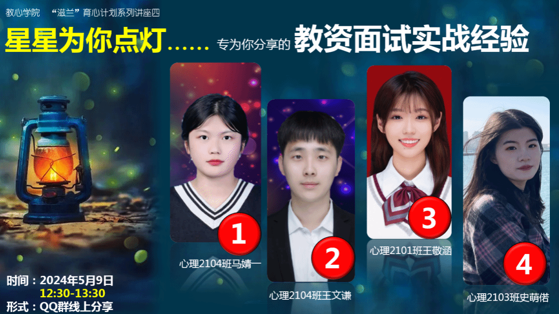此次分享会的成功举办,不仅为即将参加教师资格证面试的同学们提供了宝贵的经验分享和指导支持,也进一步推动了应用心理学专业师范认证,提高应用心理学专业师范生培养质量。今后心理系将继续举办分享会和交流活动,为同学们的学习和发展提供更多的帮助和支持。