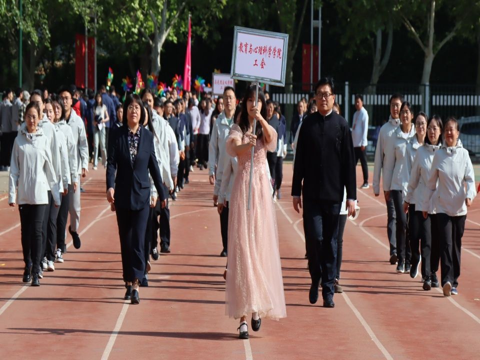 开幕式上,新葡萄88833官网AMG学生与教职工方队手擎知识火种,踏着铿锵有力的步伐向主席台迈进。步履一致彰显着协作精神,坚毅目光中跃动着青春理想,以飒爽英姿诠释着教心人特有的蓬勃朝气,用信念与力量书写着新时代教育人的奋进篇章。