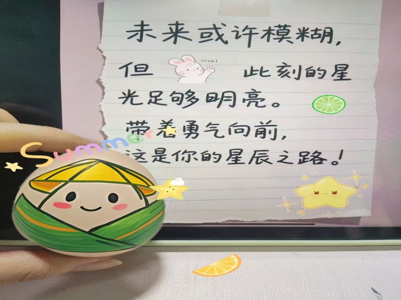 本次活动以端午节为契机,鼓励大家用画笔点亮心光,以彩蛋传递情谊,分享心理调试妙招。学生积极参与,巧妙地将端午元素融入彩蛋创作之中,让小小的彩蛋承载了浓浓的端午情思。同时,学生还分享了实用的心理调试妙招,让多样的彩蛋体现了调节情绪的方法。活动结束后,学生纷纷表示在创作和分享的过程中学会了有效的心理调试方法,提升了自身的心理素质,学会了更好地表达情感,收获了积极向上的心态和对美好生活的向往。