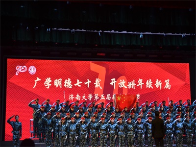 踏着响亮的口号,新葡萄官网合唱团迅速摆好队列,在悠扬的音乐中,深情歌唱了济大校歌《你我同行》,优美动听,集体凝聚力凸显。校歌结束后,新葡萄官网旗手手持国旗,踏着整齐的正步贯穿全场,干脆利落的正步尽显教心英姿,赢得现场一阵好评。慷慨激昂的演讲随之而来,饱满的激情与高昂的声音让舞台上的队员们显得英气十足。之后合唱自选曲目《天耀中华》的演唱,尽显当代年轻人的昂扬斗志与拼搏精神,抒发了浓浓的爱国情感,伴随着整齐划一的手语,新葡萄官网合唱团尽情的表现着对祖国的祝福与热爱。最后,在全体队员面向国旗的整齐敬礼中谢幕。经过不懈的拼搏与努力,新葡萄官网合唱团以深情的歌唱和震撼的手语打动了评委,以9.71高分取得二等奖的优异成绩。