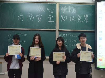 活动一开始,主持人就讲解一些了基本的消防知识,让参赛选手对消防安全有了初步的认识,也让学生们明白了消防安全的重要性。随后比赛正式打响。本次比赛分为笔试与抢答两部分。首先,选手进行有关消防安全的笔试。笔试一结束,便有工作人员进行改卷,并公布笔试结果。紧接着,就进入了紧张而刺激的抢答环节。主持人一念出问题,选手们便开始抢答。各队选手都积极参与,踊跃抢答,现场气氛热烈。抢答结束后,评委现场公布分数,评选出了一、二、三等奖。其中特教1801班获得了此次比赛的一等奖。最后,主持人又向在场的同学们介绍了一些在火灾中减少恐慌的心理放松小技巧,使同学们能够在灾难来临时保持清醒与冷静。
