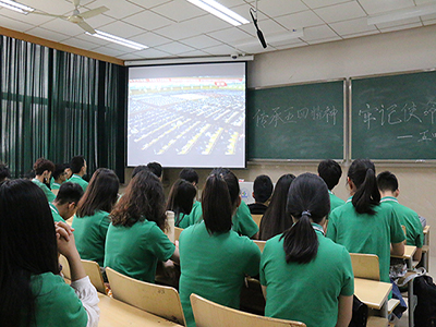 本次活动主要分为三项进行。首先,主持人由“青春心向党,建功新时代”主题演讲引入今天的活动主题。演讲中谈到,国家发展与青年成长相辅相成、互为表里,青年以青春力量催动国家向前,国家也以辽阔舞台助力青年向上。随后,同学们一起观看了纪念五四运动100周年大会直播。大会上,习近平指出,青年是整个社会力量最积极、最有生气的力量,国家的希望在青年,民族的未来也在青年。在聆听了习主席这一番激情澎湃的讲话之后,同学们自觉地组织小组,进行关于五四运动主题的讨论。讨论中,同学们畅所欲言,有的分析了五四运动背后体现出的精神,也有的抒发了自己要“报强国志,树爱国情”的坚定信念。