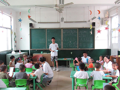 骄阳似火,蝉鸣震野。7月15日午后,进行了短暂的休息后,新葡萄88833官网AMG的志愿者们再次进入土安小学教室的大门,向大班的小朋友们进行绘画与手工课堂的授教。