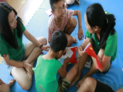 2019年是建国第70周年,习近平总书记曾在重要大会上强调,“在中华民族几千年绵延发展的历史长河中,爱国主义始终是激昂的主旋律,始终是激励我国各民族自强不息的强大力量。”为发扬我国民族精神核心——爱国主义,7月18日,新葡萄88833官网AMG“月白澹芙蓉,倾情暖星语”实践团于星语培智中心开展爱国教育活动。
