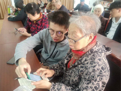 小区的老人们对志愿者的到来非常欢迎,在充分了解老人们对智能手机的应用程度之后,志愿者们先对上一次的教习内容进行回顾,加深老人们的印象,然后开始了本次使用智能手机功能的教程。志愿者向老人们耐心热情地讲解了手机系统内的铃声设置,字体大小的调节和微信如何添加好友、删除好友的操作,并向老人们多次演示,直到老人们可以熟练操作。其间老人们对不太了解的地方向志愿者们提问,双方积极互动,老人们脸上也洋溢着笑容。活动结束后志愿者们,对老人的学习情况做好记录,帮助打扫好卫生后与老人们挥手告别。
