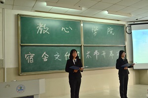 下午2时许,活动参与者在活动工作人员安排下有序入场。首先由主持人致开场辞并请学院党委副书记卢琦上台讲话,她指出宿舍环境对于学生大学学习与生活具有重要影响,并对宿舍安全等方面提出指导性建议与要求。随后宿管部部长姜雨同学发言,姜雨同学从对宿舍安全知识的学习、对日常生活环境的影响等方面阐述了举办宿舍文化艺术节的重要意义,并且介绍了宿舍文化艺术节举办的各项活动。最后,主持人做总结发言,第十一届宿舍文化艺术节开幕式圆满结束。