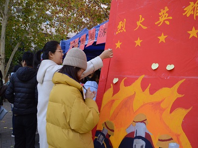 活动开始后,便吸引了大量的同学前来参与。有些同学在展板上写下寄语,在表达了对烈火英雄们的敬畏与感激的同时,也坚定了牢记消防安全的信念;另一些同学积极参与消防知识答题活动,竞答活动以游戏的形式加深了同学们对于消防知识的理解,增加了对日常生活安全隐患,灭火器的使用以及宿舍安全逃生等消防常识的了解;还有一些同学参与了套圈和正话反说的游戏,现场气氛活跃。最后,由于同学们积极踊跃地参与其中,本次活动在欢声笑语中圆满结束,相信活动中所充盈的知识也使同学们收获颇丰。
