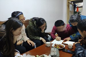 小玮的奶奶热情招待了大家。在志愿者们和奶奶的陪伴下,小玮认真完成了志愿者们为他出的一套乘除法数学题并进行了小学课本中一篇文章的朗诵。大家为小玮检查了数学作业和千字文的背诵情况,认真辅导他进行错误题目的纠正。在这阴沉的天气里,看着这个男孩儿的成长与进步,阳光仿佛透过层层乌云照进了大家的心里。志愿者们与奶奶相谈甚欢,从奶奶口中了解了小玮最近的生活与学习情况。在融洽的氛围中,小玮也慢慢感受到与人相处的快乐,渐渐绽开了笑容。