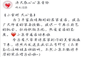 这场特殊的线上厨艺大赛给同学们提供了一个展示厨艺的机会,提高了动手创新能力,丰富了居家生活,让大学生感受到亲情的温暖。愿同学们能以积极乐观、热爱生活的态度学习和生活。