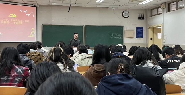 活动以线下宣讲为主要形式,各团支部广泛采用“微宣讲”“主题团课”等方式开展组织化学习。心理2103班以集体为单位,组织观看“时政微纪录丨温暖——习近平与大学生朋友们”短片,以观影和讨论相结合的形式引导青年学生深刻感悟党对青年寄予的厚望和时代赋予青年的光荣使命。教管1901班刘鑫怡同学参与学习后,表达了对未来的期许:“作为大学生,要了解社会,深入基层,学习党和国家的方针政策,要一如既往坚定跟党走的信心决心,贯彻二十大精神,把自己的人生目标与祖国、时代的命运联系起来,树立远大理想,培养良好品德,勤奋学习,立志成才。”