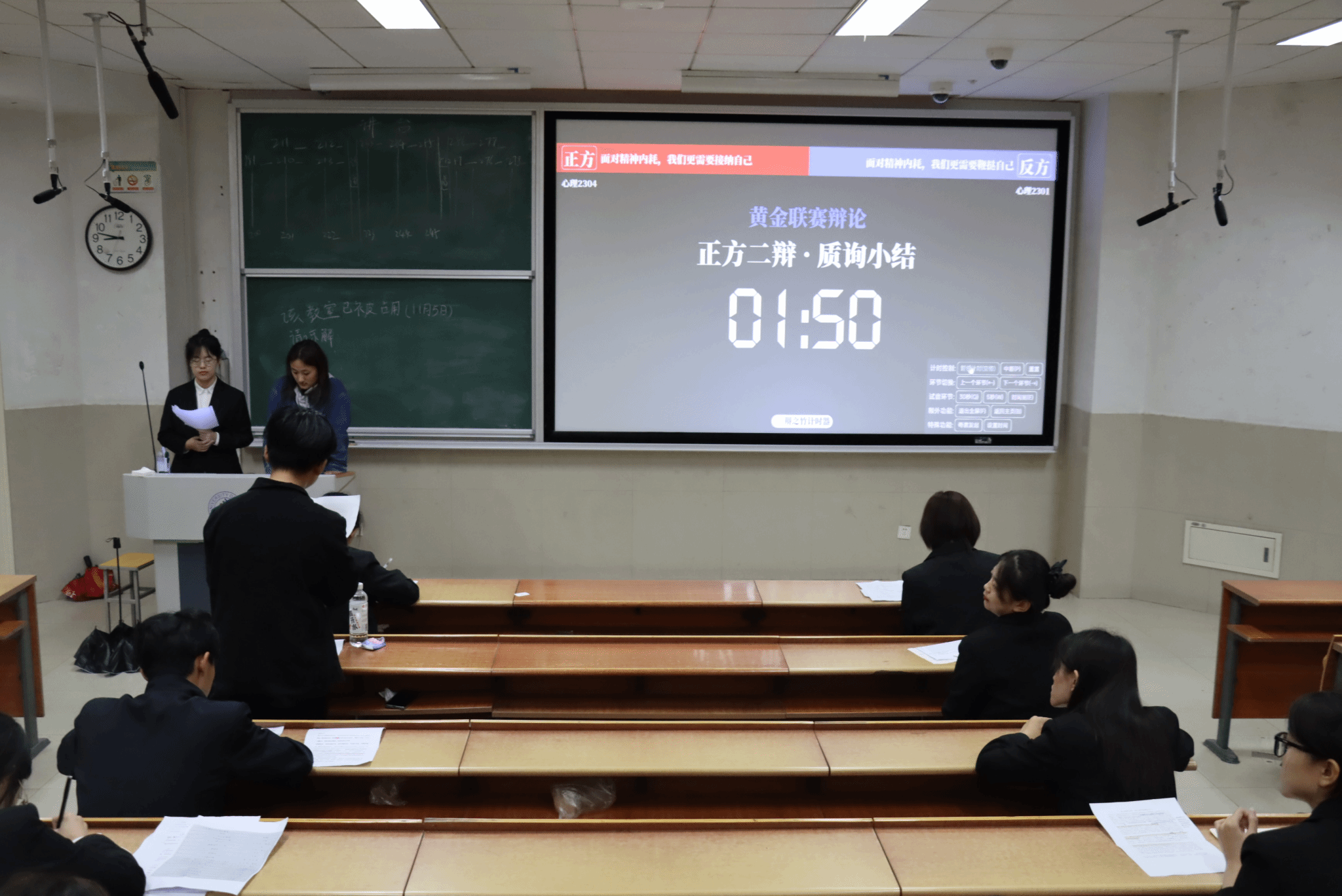 本次比赛以班级为单位,辩手就“过程还是结果更能体现年轻人的奋斗价值”和“面对精神内耗,我们更需要接纳自己还是鞭挞自己”等辩题展开辩论。参赛同学紧抓辩论矛盾点,锚定论点、论证详实,对辩精彩有力、思维清晰严密,班级之间的思维碰撞、层层探索与解答给在场观众留下深刻印象。最终,特教2301班、心理2301班、特教2303班分别获得本次辩论赛的一、二、三等奖。
