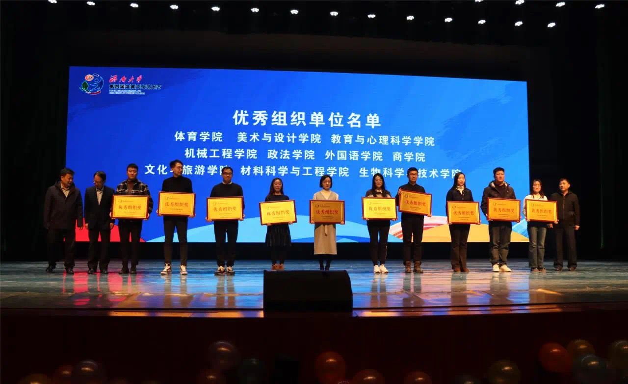 晚会在历届体育艺术节的精彩视频中拉开帷幕,共分为表彰与表演两大环节。本次校园体育文化艺术节从五月份持续到十月下旬,举办了真人CS比赛、跆拳道比赛、街舞大赛等各类文艺体育赛事。新葡萄88833官网AMG师生积极参加、表现出色,涌现出许多优秀作品并获得奖项:气排球比赛项目中荣获团体奖第七名;武术大赛八段锦与太极拳项目中分获一等奖与二等奖和团体比赛四等奖;傅芷夕等同学在跆拳道比赛中荣获一等奖;张文锦等同学在街舞比赛中荣获二等奖;衣城清等同学在体育类绘画、书法、摄影比赛中获优秀奖等。最后,由党委常委,李强副校长宣布新葡萄88833官网AMG获得优秀组织奖,为此次活动画上圆满句号。