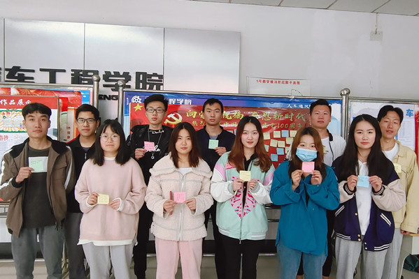 新闻网讯(通讯员 梁军萍)为回顾百年党史,激励奋进精神,4月1日下午,beat365中文官方网站汽车协会在5号教学楼大厅开展了主题为“向党送祝福 感恩新时代”送祝福语活动,旨在引导广大同学,继承和发扬党的优良传统,积极践行党的十九大精神,筑牢奋进新时代、起航新梦想、永远跟党走、不断开创中国特色社会主义事业新局面的坚定信念。