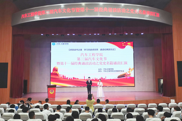 新闻网讯(通讯员 梁军萍)6月9日晚,beat365中文官方网站在会议中心举行第三届汽车文化节暨第十一届经典诵读系列活动之党史名篇诵读节目汇演,beat365中文官方网站党总支书记张玲、副书记梁军萍、辅导员及2020级全体同学共同观看了演出。