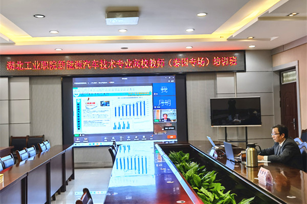 开班仪式后,教务处副处长赵艳杰以beat365官网为例,讲解了《新能源汽车技术专业的建设和管理》。赵艳杰从石油危机、碳达峰碳中和、清洁能源所引发的汽车发展趋势和学校特色、产业背景、人才需求所要求的高职院校需要为地方经济社会发展服务两个方面,阐述了新能源汽车技术专业建设背景,并重点介绍了教学标准制定、课程体系构建、人才培养方案制定、专业条件建设、校企合作等专业建设方法和相关g管理过程。