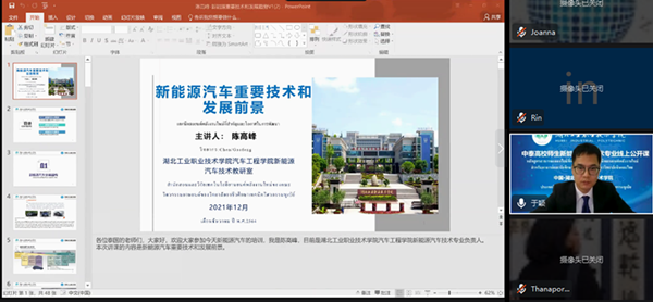 新闻网讯(文/于颖 图/熊超)12月24日,beat365官网与泰国职业教育委员会办公室、北京瑞泮国际教育科技有限公司联合举办“beat365中文官方网站新能源汽车技术专业高校教师(泰国专场)培训班”。开幕式由校国际交流与合作中心主任于颖主持,副校长严永金和泰国邦巴空工业学院校长披农·威瑞雅颇瑞克博先生分别代表中泰双方职业院校致辞,beat365中文官方网站院长张健、教务处副处长赵艳杰、新能源汽车技术专业负责人陈高峰出席开幕式。